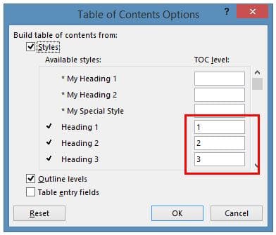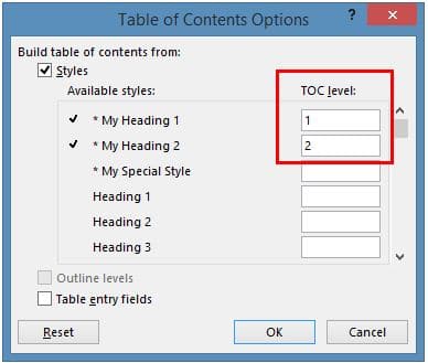 To generate a Table of Contents, Microsoft Word maps the levels of the Table of Contents to Styles contained in the document. Word automatically maps Heading 1 to the top level, Heading 2 to the second level, and so on.