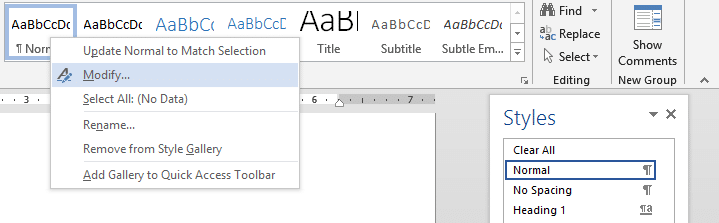 Since I made this change to the ‘Normal’ Style, this will be the standard ‘default’ formatting of all the new documents that I create.