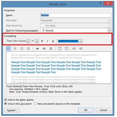 Since I made this change to the ‘Normal’ Style, this will be the standard ‘default’ formatting of all the new documents that I create.