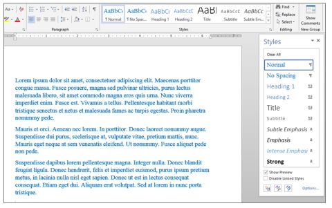A document ‘Style’ is an underlying formatting definition. Even if you have never intentionally applied a style to your content, all of your content contains a style none-the-less. If you have never created custom styles, most of your content will probably contain a built-in style. These styles are part of every Microsoft Word document. The most common one is called ‘Normal. ’Depending on the version of Microsoft Word you are using, the ‘Normal’ style may be defined in different ways. An older version of Word may define ‘Normal’ as ‘Times New Roman’ font. Later versions of Word will defined it with the ‘Calibri’ font.